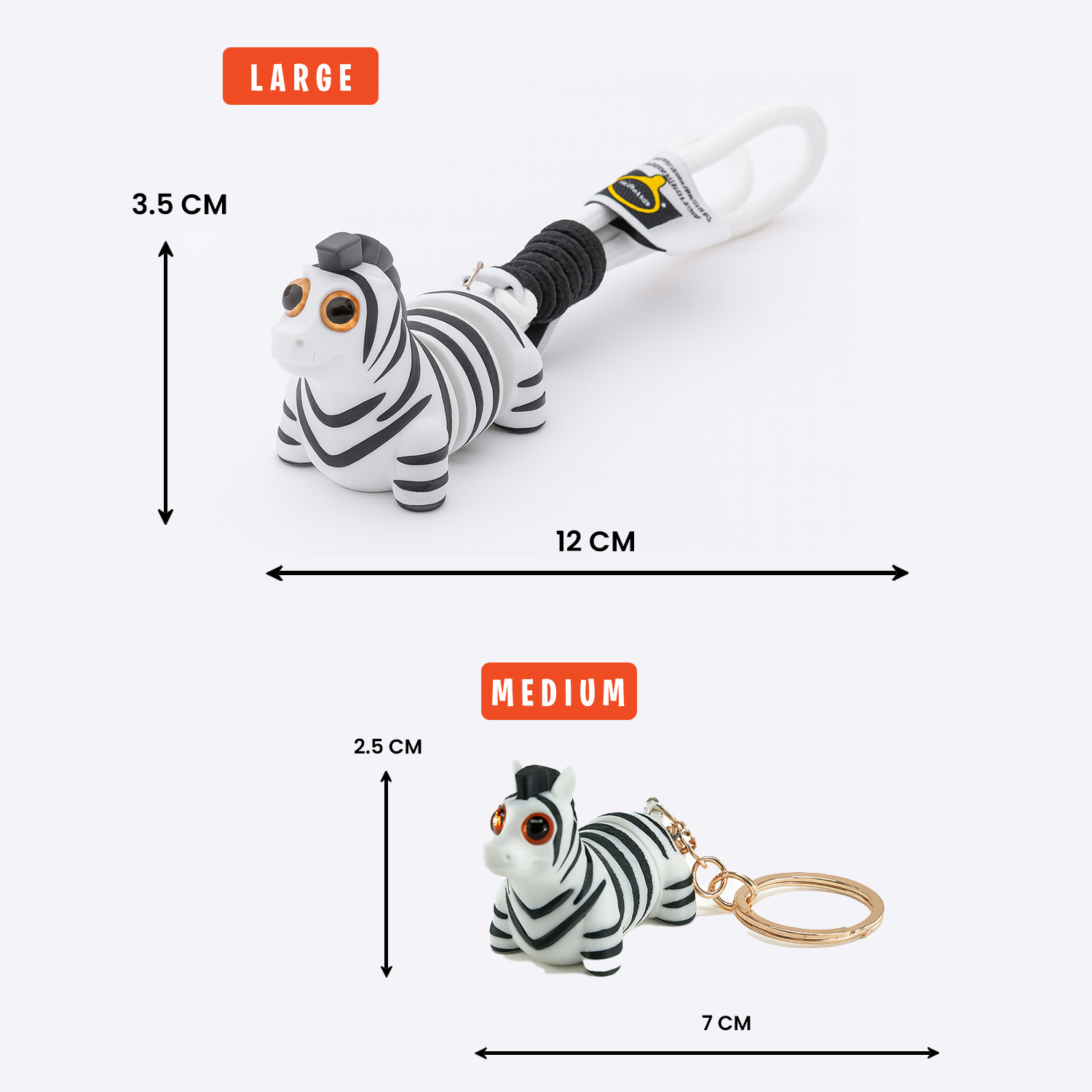 - Medium Zebra Keychain: 7 cm, Height: 2.5 cm